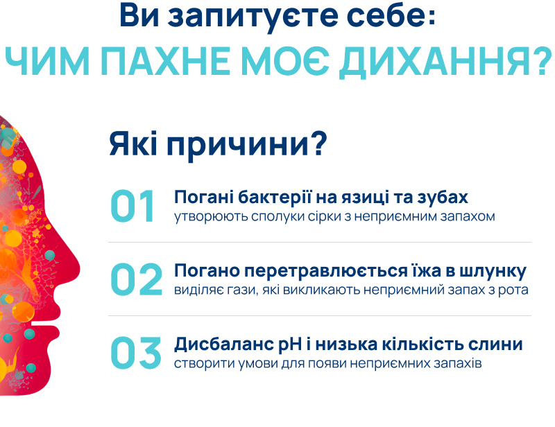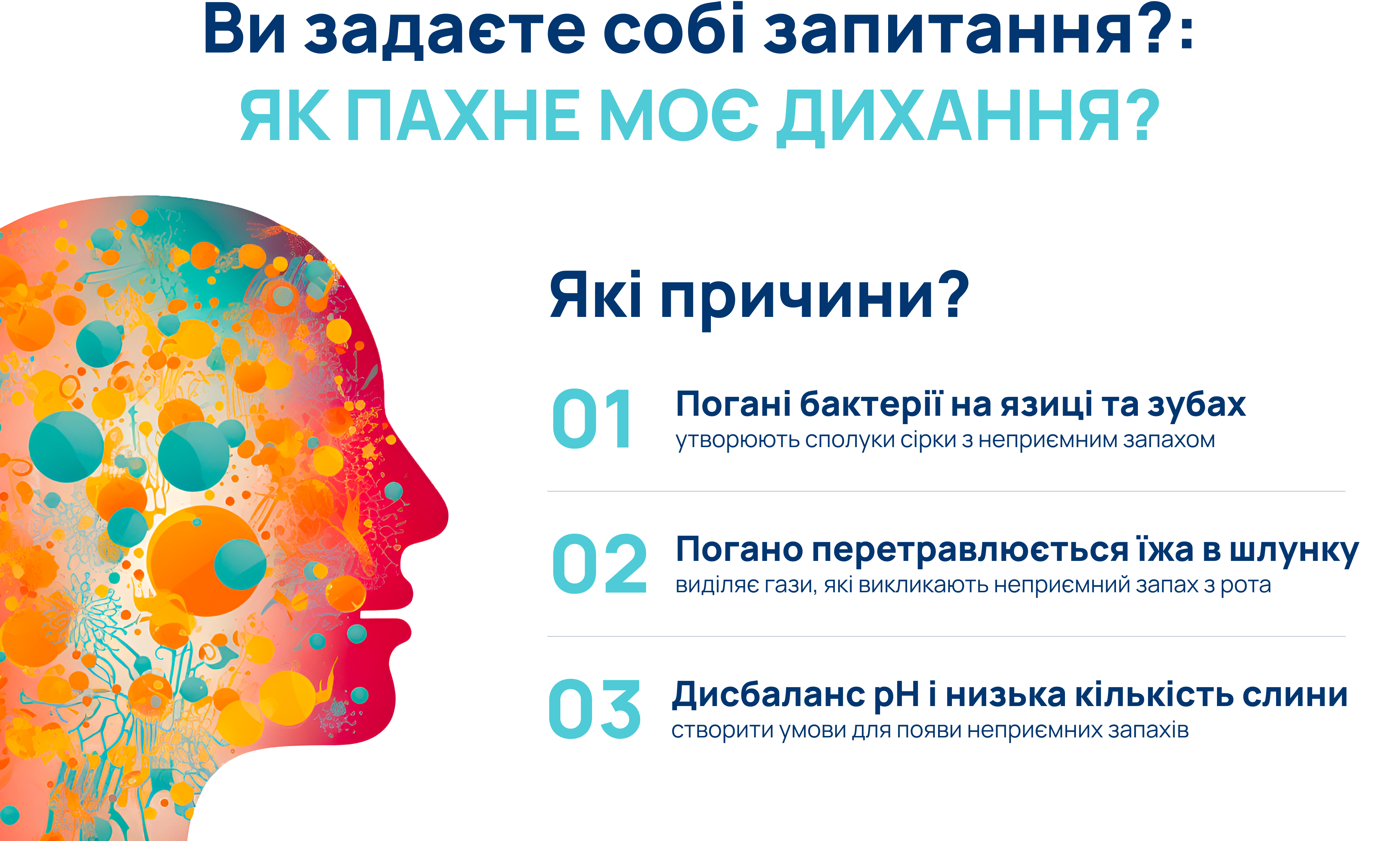 Замість НЕПРИЄМНОГО ЗАПАХА З РОТА ви отримаєте СВІЖІСТЬ та КОМФОРТ!